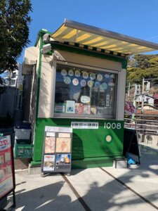 街中には江ノ電のオブジェ。