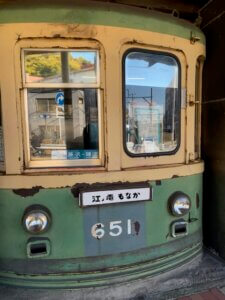 街中には江ノ電のオブジェ。