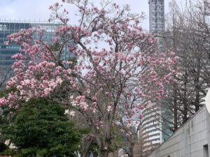 時間調整での、みなとみらいではモクレンが満開。